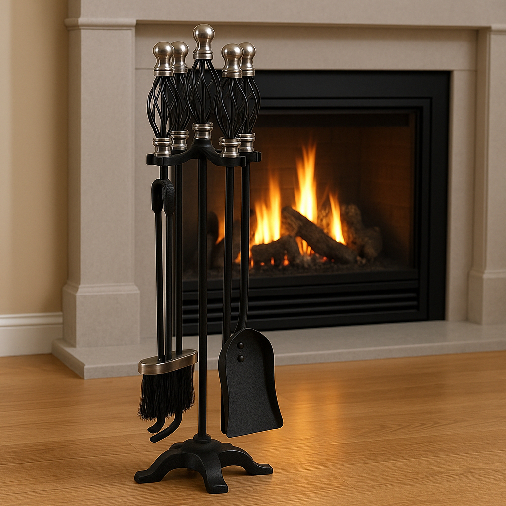 Acest set combina utilitatea cu un aspect estetic placut, fiind un accesoriu ideal pentru orice camin cu semineu.
