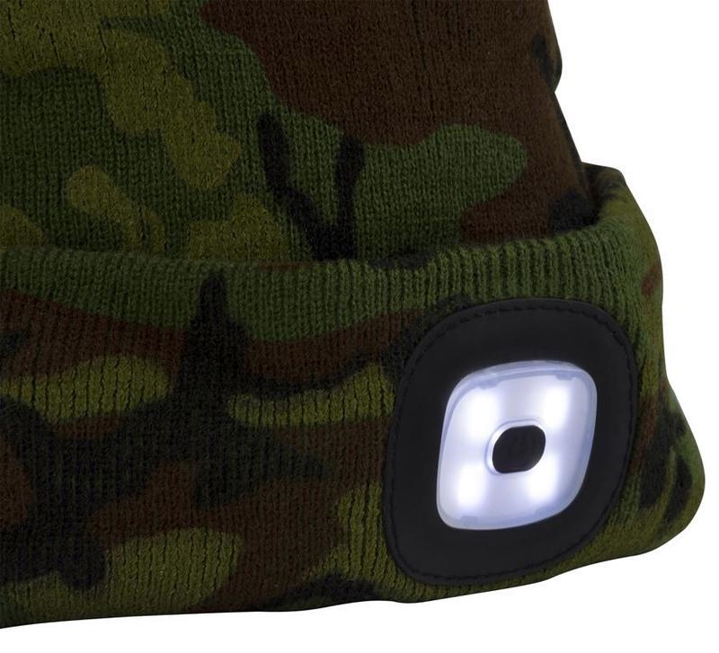 Caciula cu LED reincarcabila prin USB,4xSMD LED,Li-Ion,Army Camouflage,marime universala