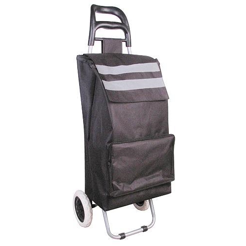 Carucior de cumparaturi fabricat din material impermeabil, cu cadru din metalic, maner cauciucat, dotat cu snur de inchidere. Fabricat din material care poate fi spalat manual.