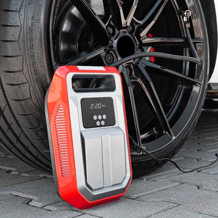 - Utilizare Diversificata: Compresorul poate fi utilizat nu doar pentru umflarea rotilor, ci si pentru alte obiecte gonflabile, cum ar fi mingi, saltele de plaja sau echipamente sportive datorita accesoriilor din set