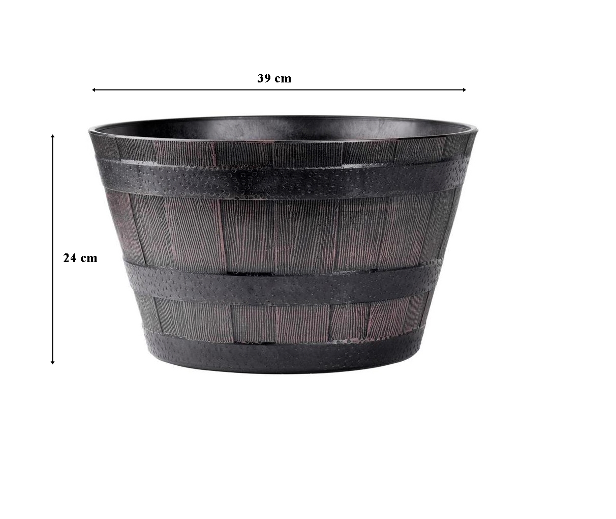 Ghiveci decorativ rotund din plastic, efect lemn teak, 39x24 cm
