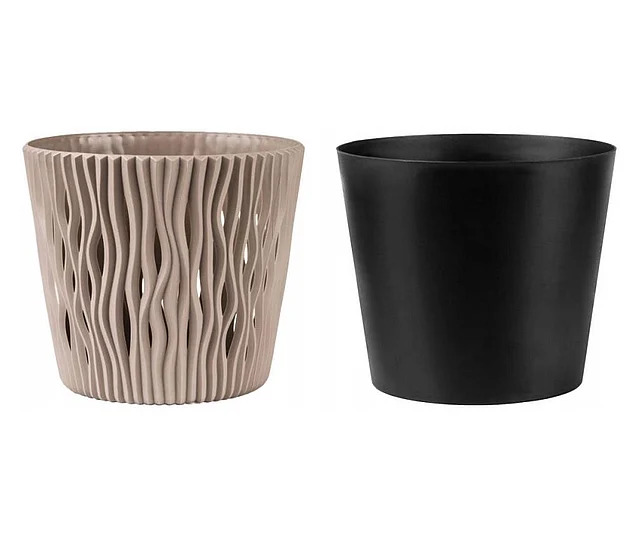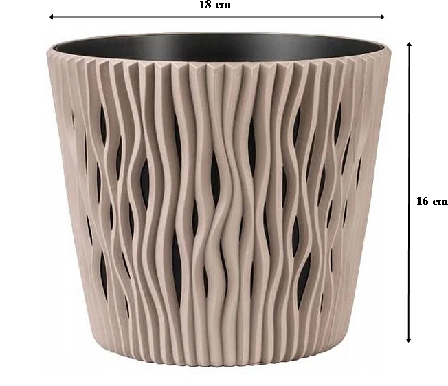 Ghiveci decorativ pentru flori, rotund, cafeniu, capacitate 3l, 16x18 cm