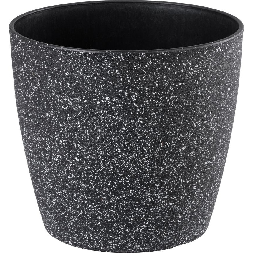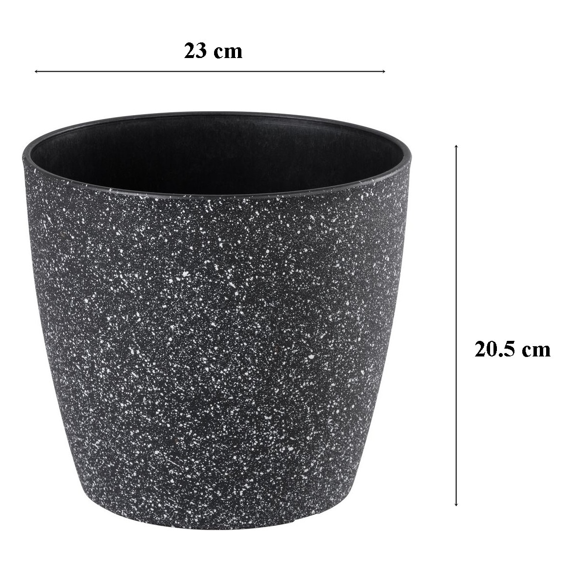 Ghiveci pentru flori din plastic rezistent, culoare neagra, Stone Effect, diametru 23 cm, inaltime 20.5 cm, cu orificiu scurgere