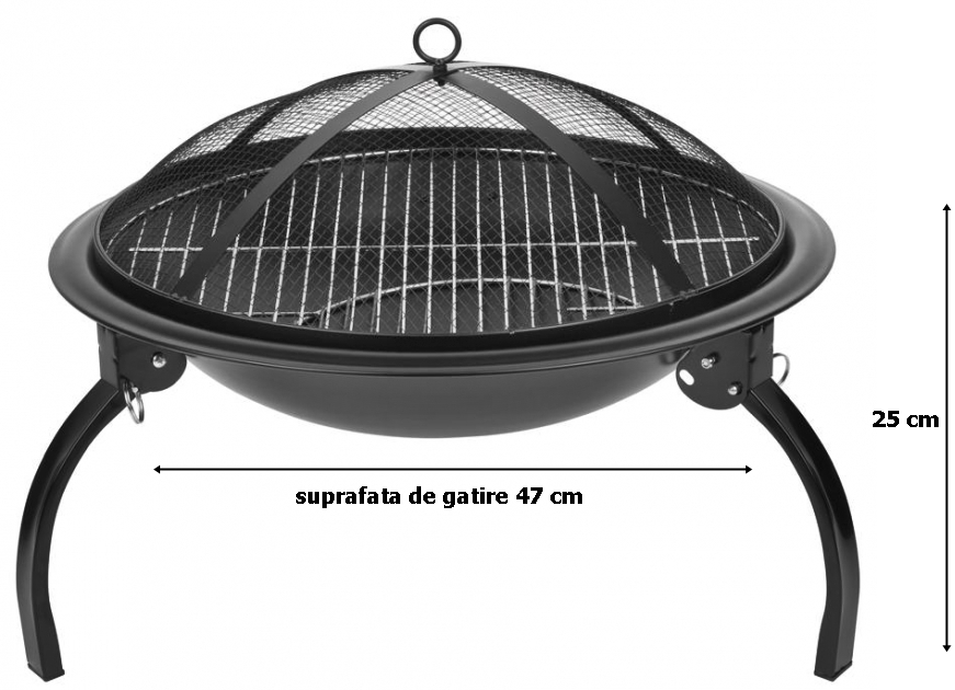 Gratar gradina,camping grill rotund, metal, 54x25 cm
