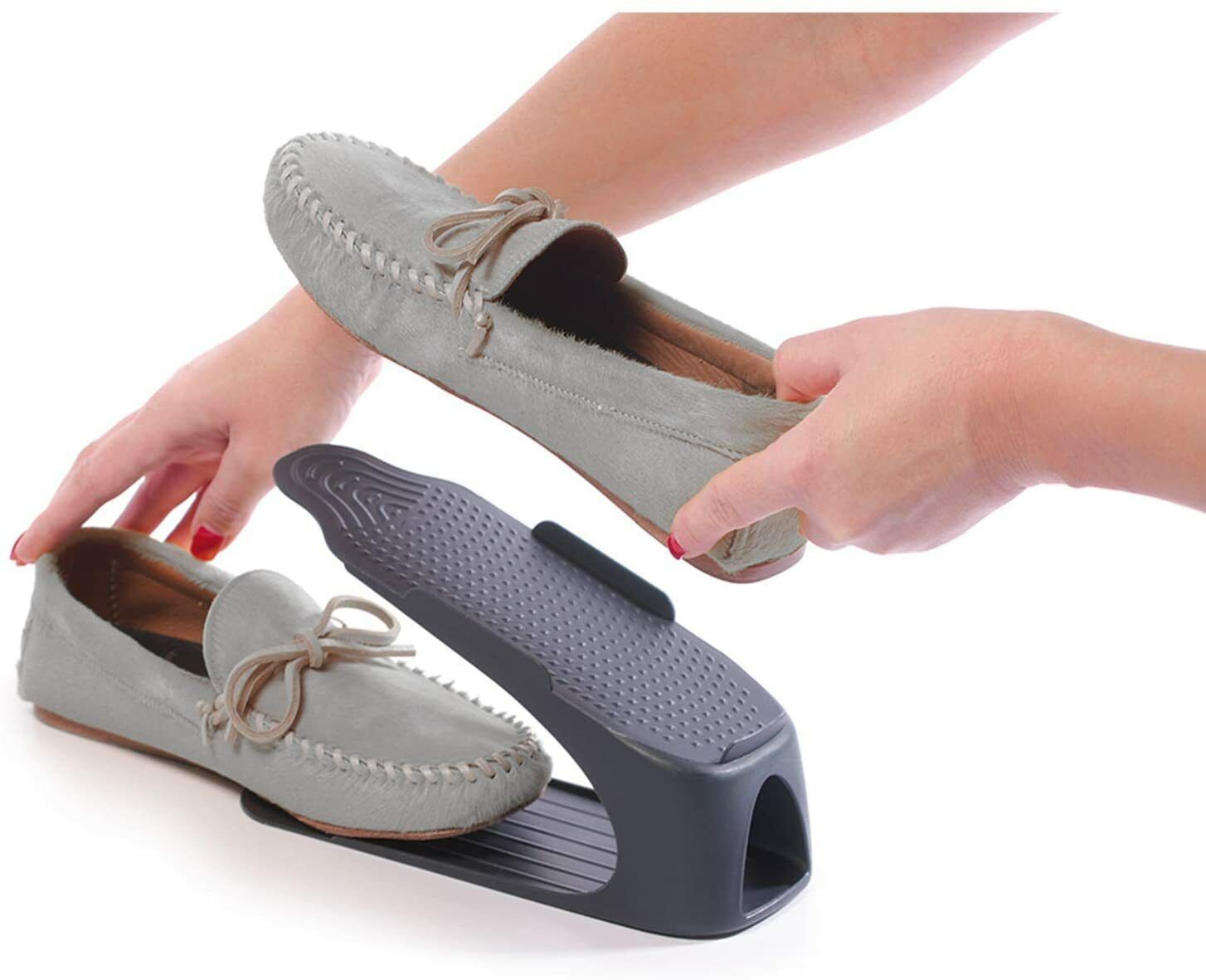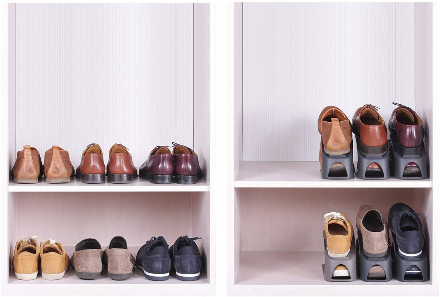 • Reduceti spatiul necesar pentru pantofi la jumatate, datorita acestui accesoriu inteligent! Organizatorul de pantofi, printr-un truc simplu va permite sa puneti doua perechi de pantofi in acelasi spatiu ocupat in mod normal de o pereche.