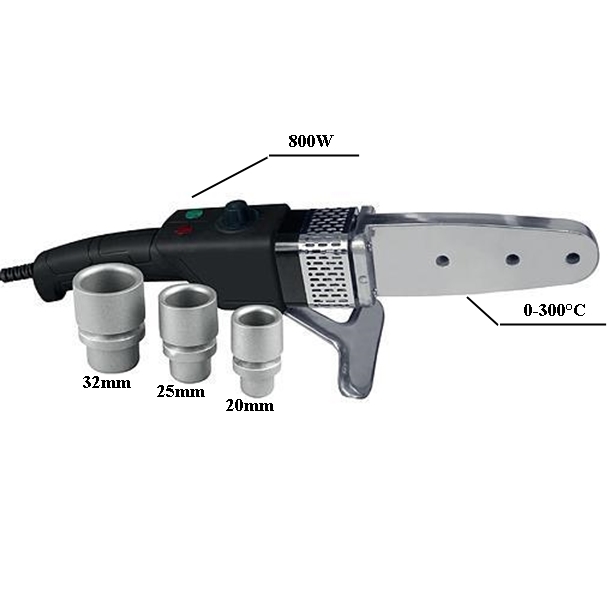 Aparat lipit tevi PPR,800W,0-300°C cu 3 accesorii in cutie metal