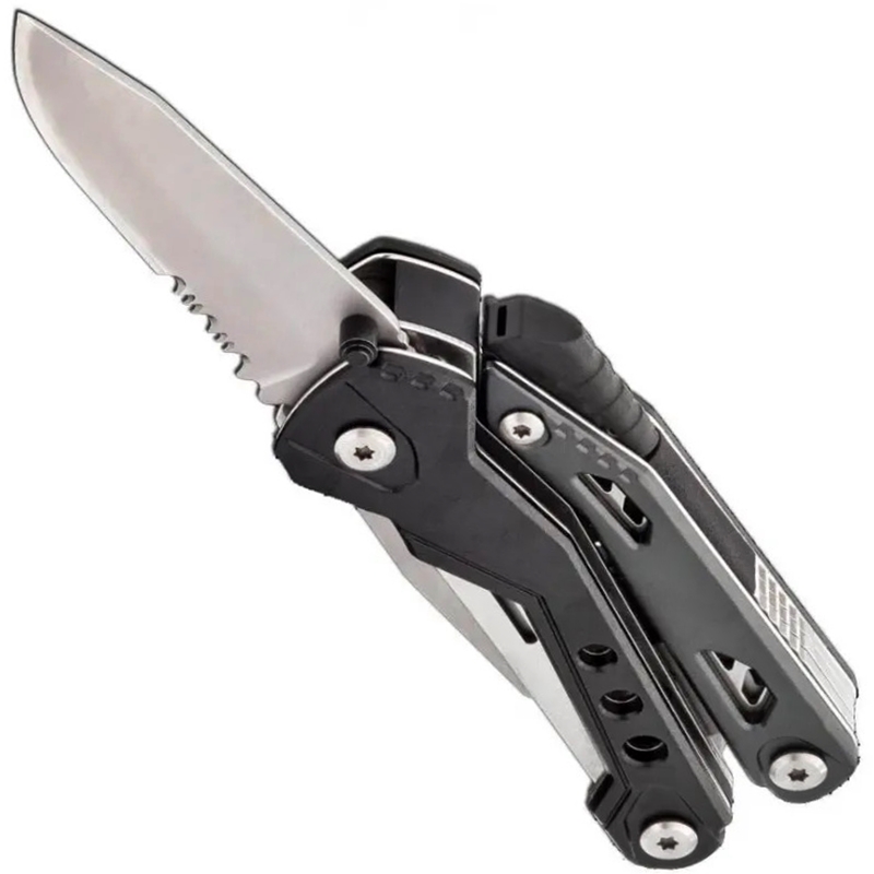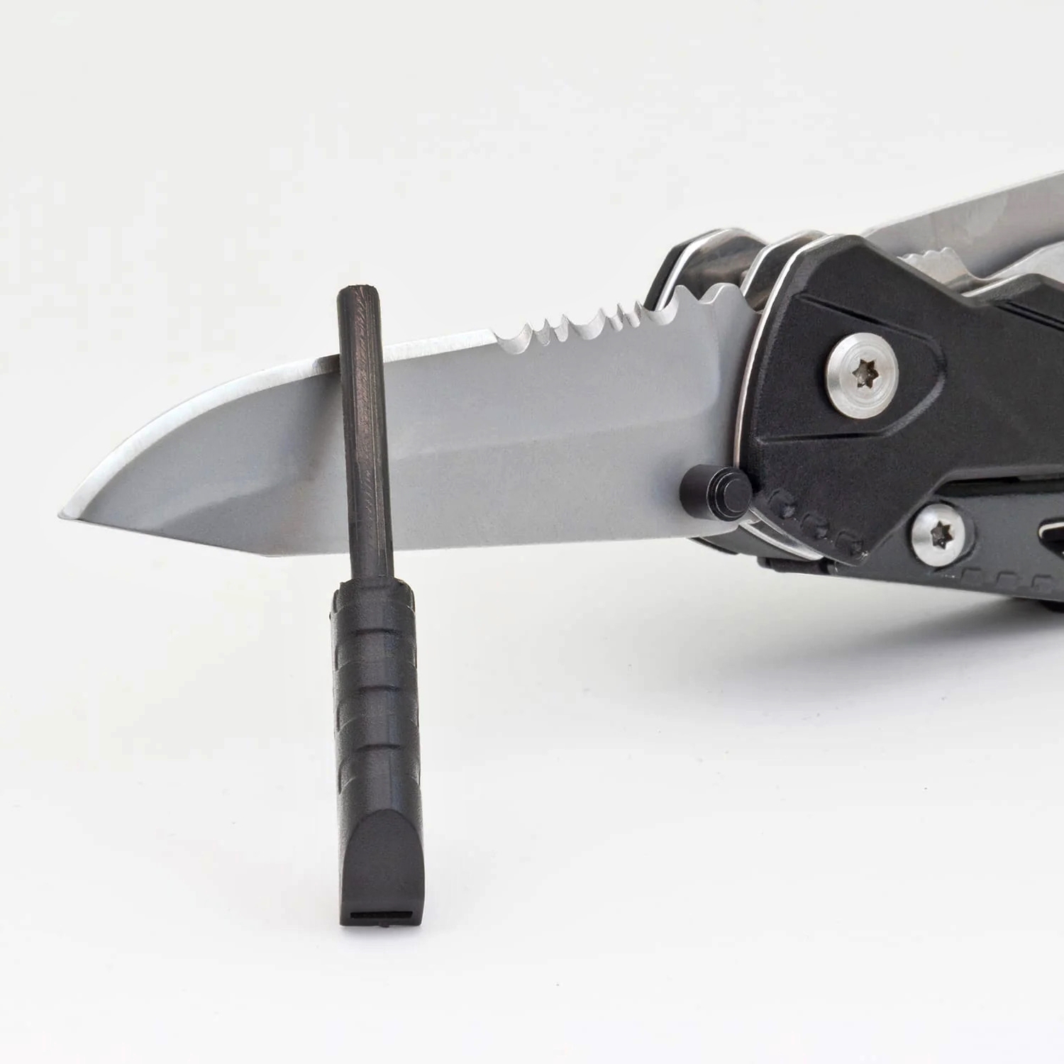 Un cutit multifunctional pentru camping si geanta de transport este un instrument versatil destinat sa indeplineasca mai multe sarcini in timpul activitatilor in aer liber. Setul cuprinde: