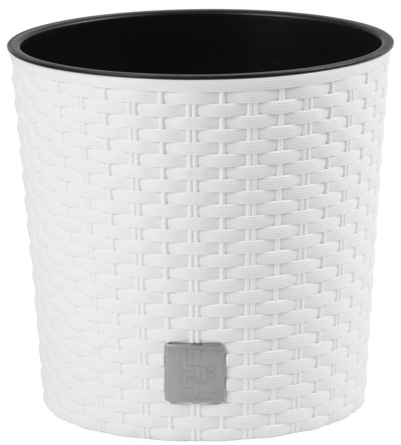 Ghiveci rotund alb, plastic rezistent, imitatie ratan, diametru 20 cm, inaltime 19 cm