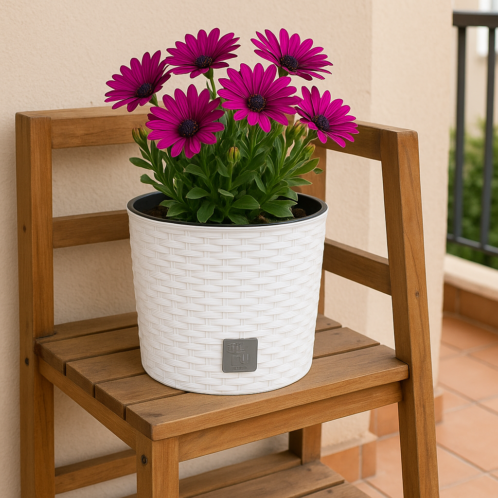 • Textura in stil ratan creeaza un efect vizual cald si natural, potrivit pentru orice tip de planta.