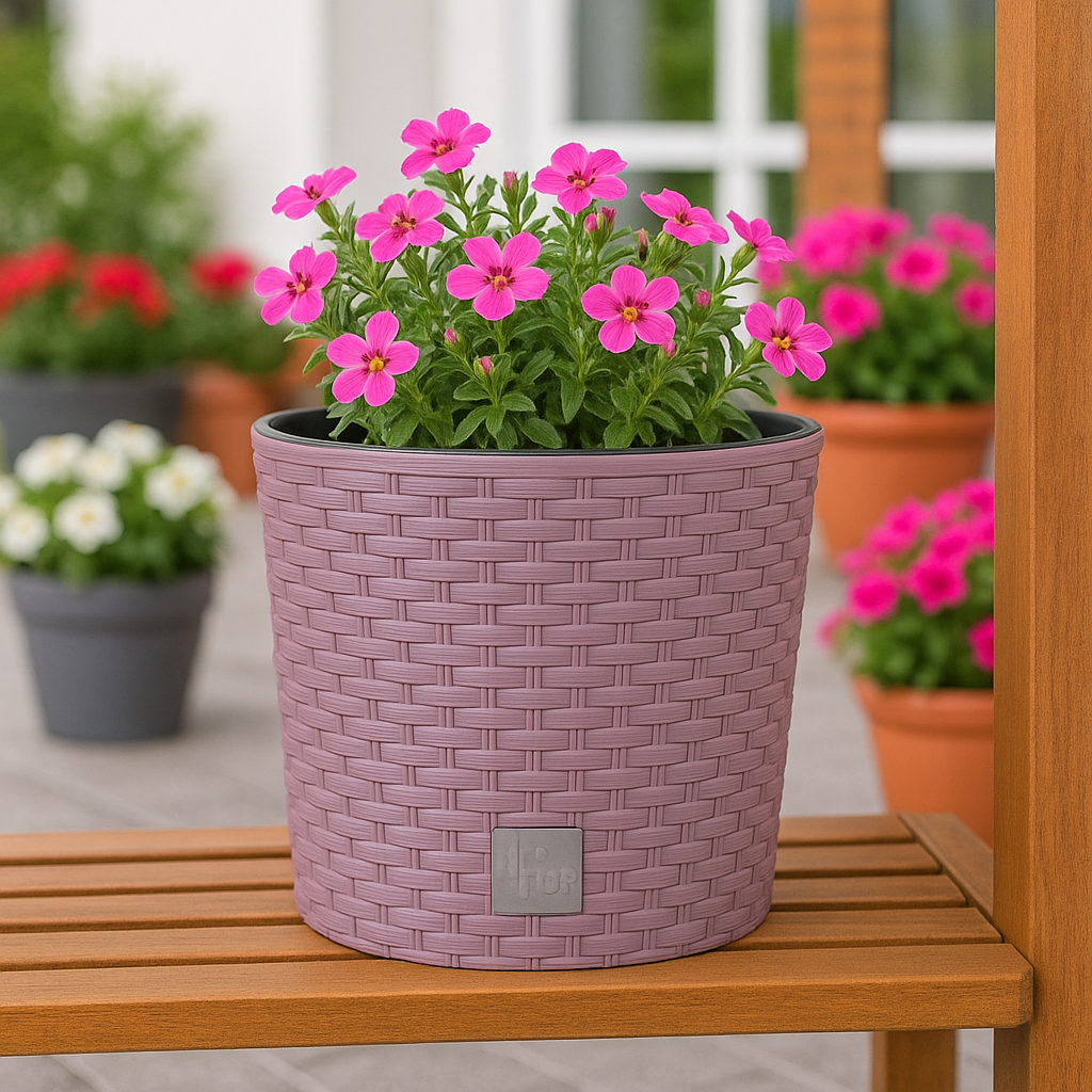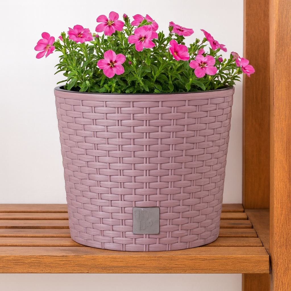 • Textura in stil ratan creeaza un efect vizual cald si natural, potrivit pentru orice tip de planta.