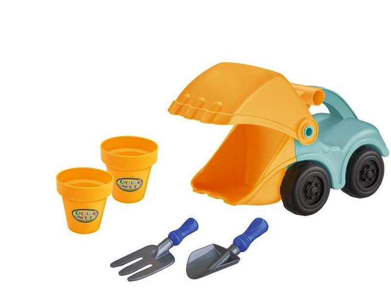 Set compus din 5 jucarii 1 x masina excavator 2 x galetusa 1 x Lopatica 1 x grebla