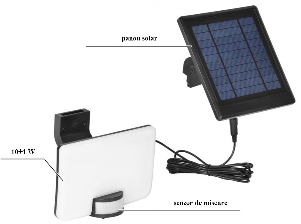• Led puternic de 10+1 W cu senzor de miscare (max 10 m)