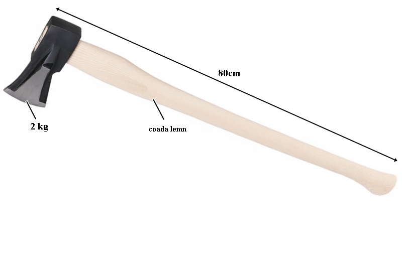 Topor despicat cu pana 2000g, lungime 800mm, coada lemn
